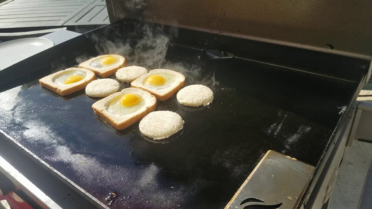 Blackstone Griddle Eggs In A Basket Youtube Yummy Grill Blackstone Griddle Delicious Breakfast Recipes